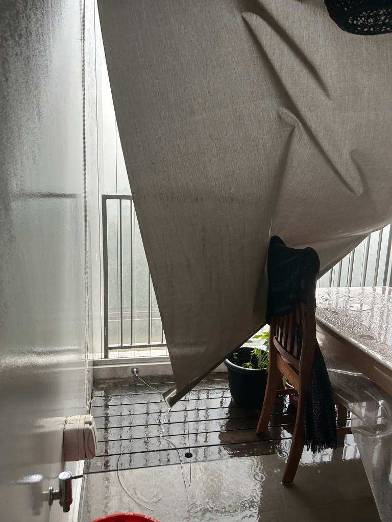 so heavy it damaged the blind in the balcony and brought much water and small debris— let it be as long as the rain is happy ☺️