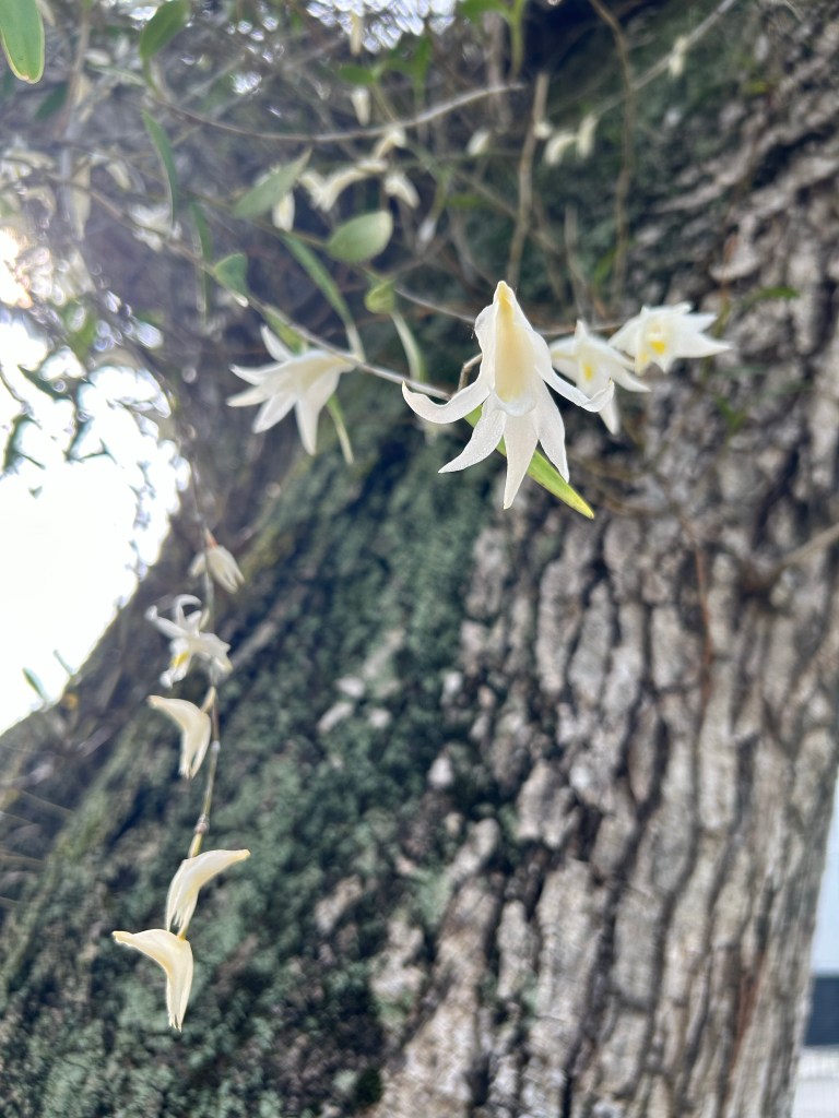 pigeon orchids ready to fall showering the earth with their last piece of sweetness