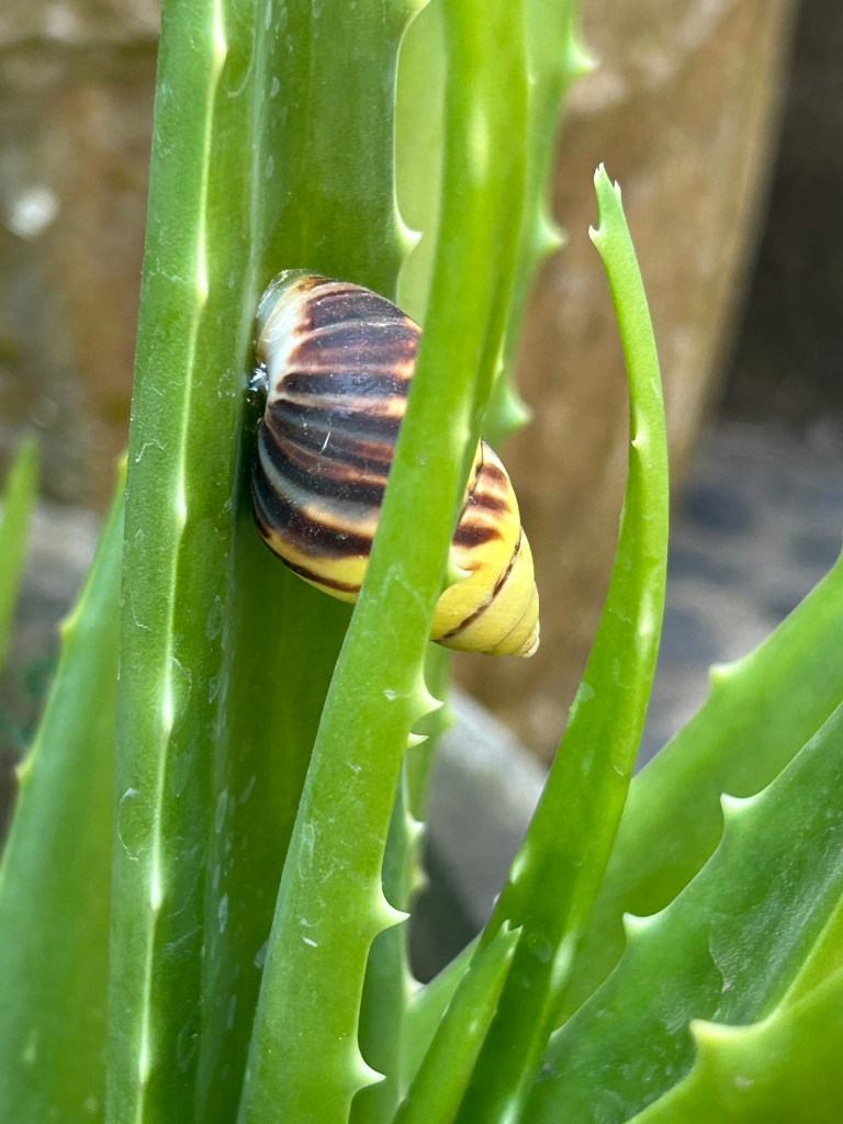 A snail can spit on an aloe vera
