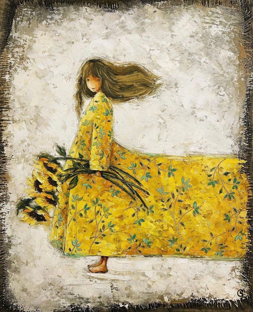 Holding sun flowers.