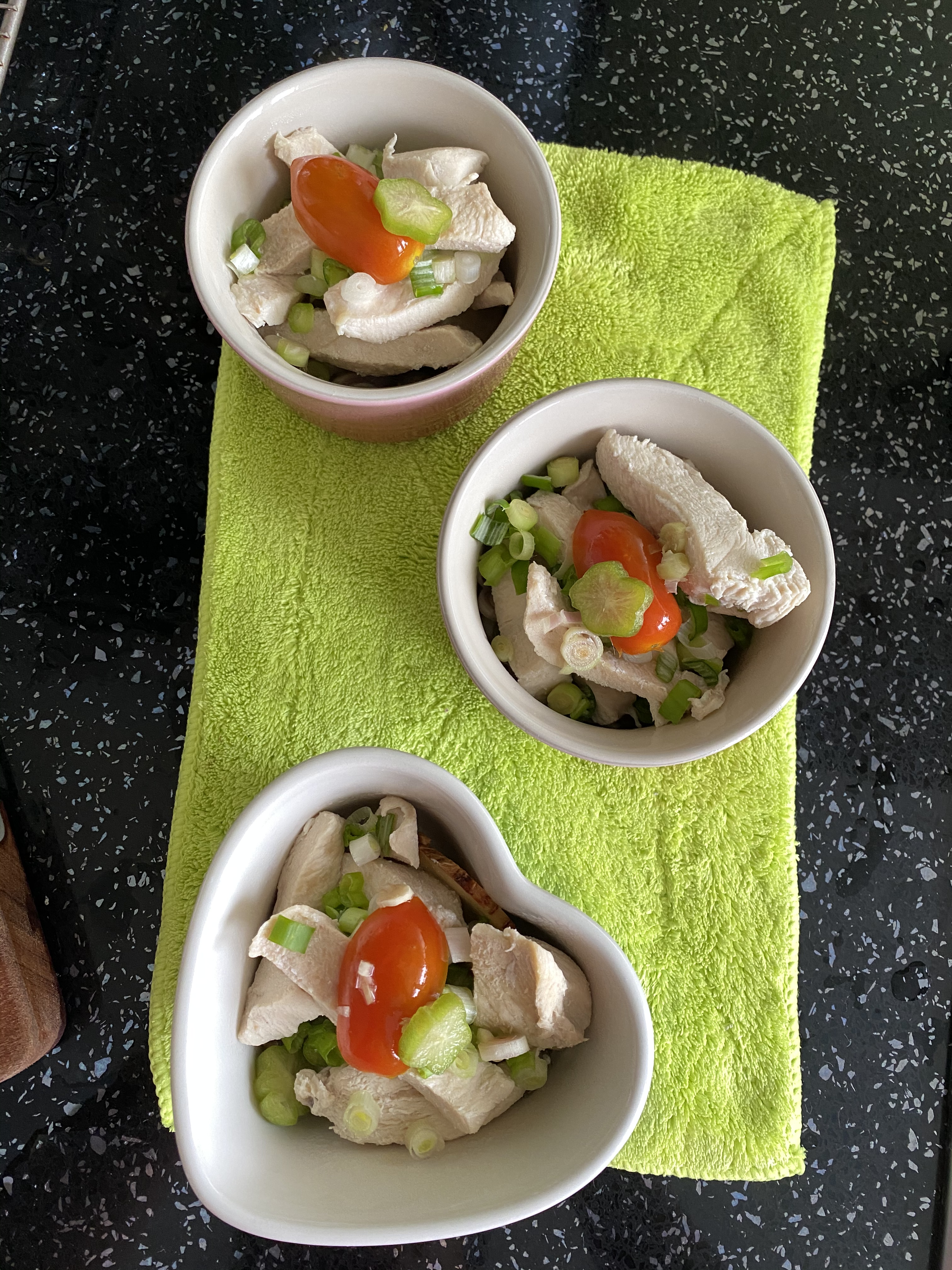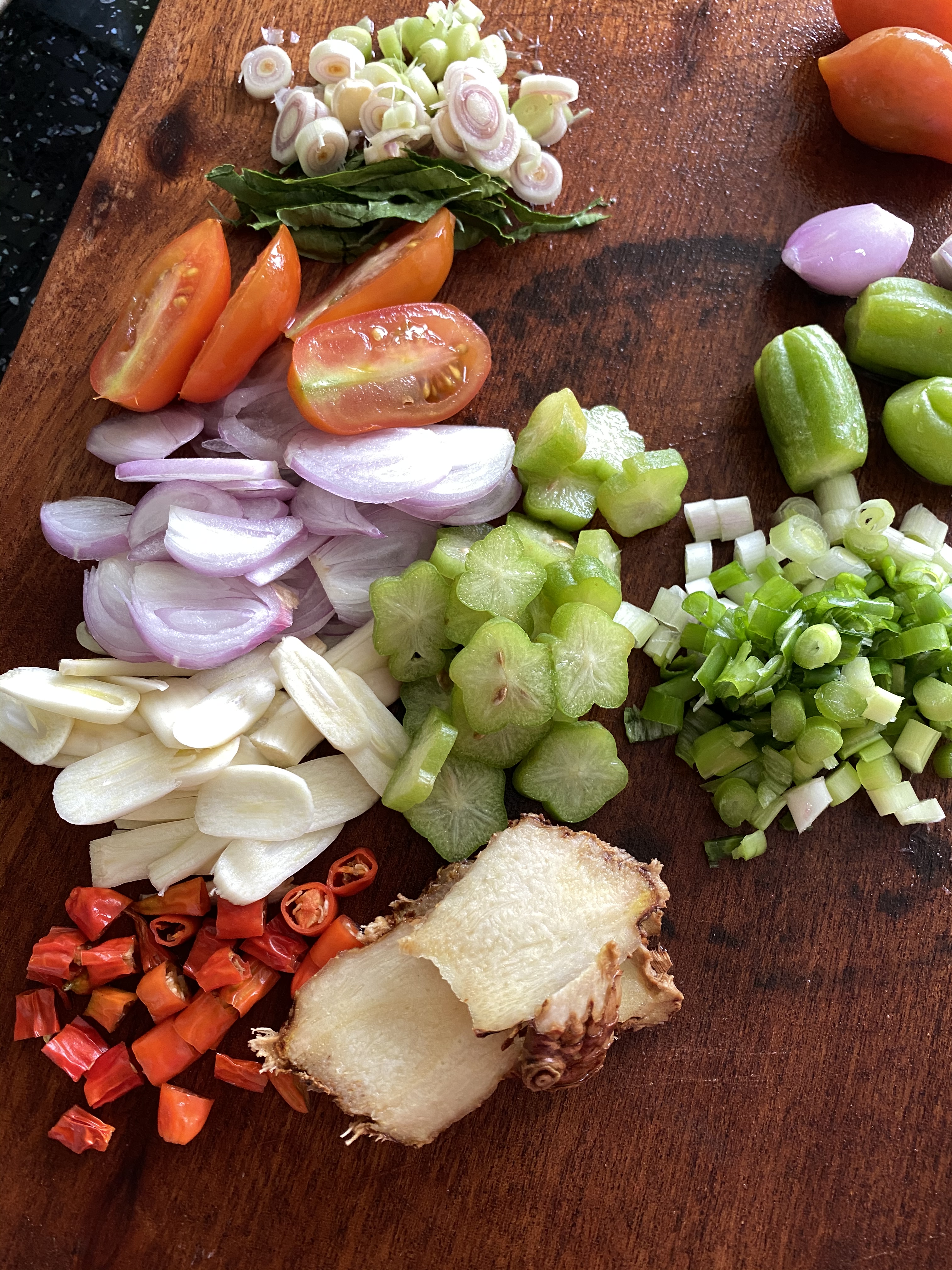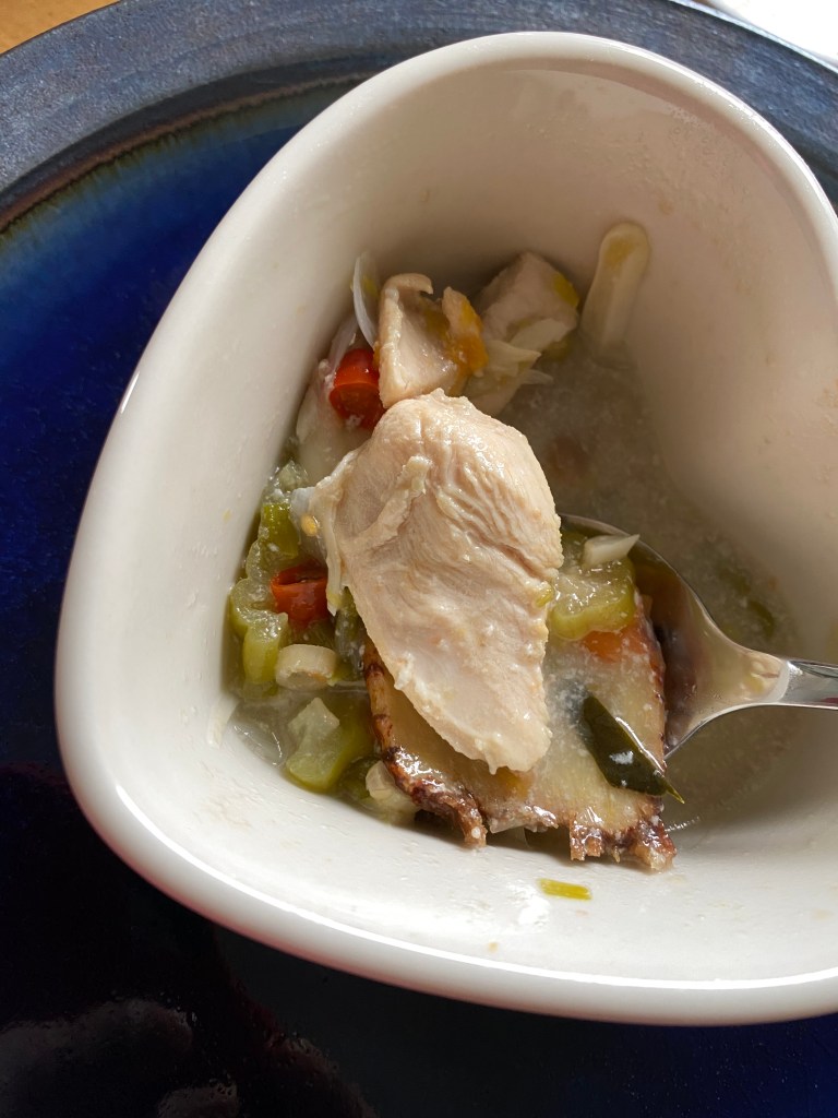 Yummy!Javanese Garang Asem in ramekin (traditionally wrapped in banana leaf)Three ramekins of garang asem ready to steamBoiled chicken added to ramekin, coconut milk add the lastSliced herbs and spices arranged in ramekinChicken boiled in lemongrass, kefir lime leaf, galangal, sugar (if you wish), salt, coconut milkCleaned and sliced